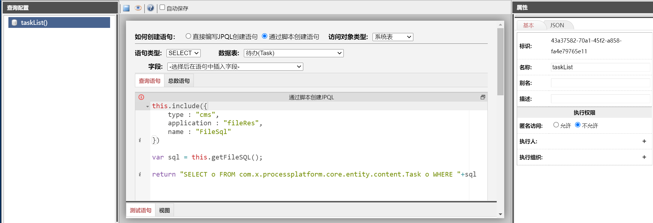 样例一:在通用脚本中定义一个通用的方法去获取公文管理所有的文种,在查询语句中根据该方法来拼接JPQL。